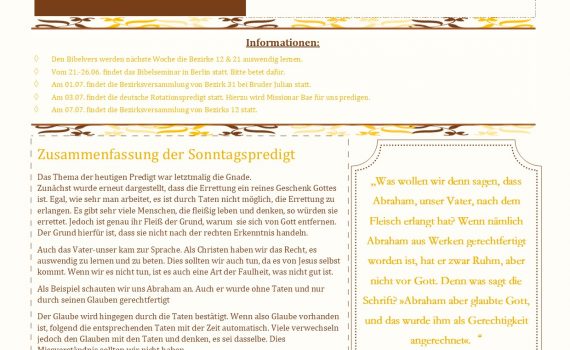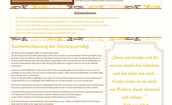 생명의 말씀 선교회 Schwester Kwak, Nayoung 19. 06. 2010 Wiedergeburtstag Herzlichen Glückwunsch 곽 나영 자매님 19. 06. 2010 구원 받으심을 축하 합니다. 생일 축하합니다 Alles Gute zum Geburtstag Dortmund Gemeinde 성 경 구 절 벧전 1:23 너희가 거듭난 것이 썩어질 씨로 된 것이 아니요 썩지 아니할 씨로 된 […]