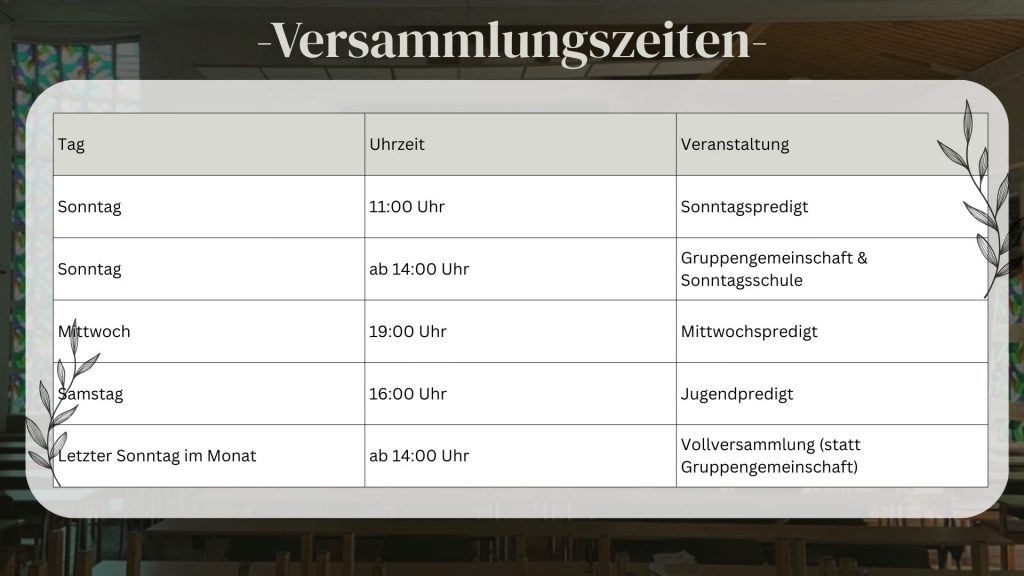 | Gemeindeschule | Sonntag | 11:00 Uhr |