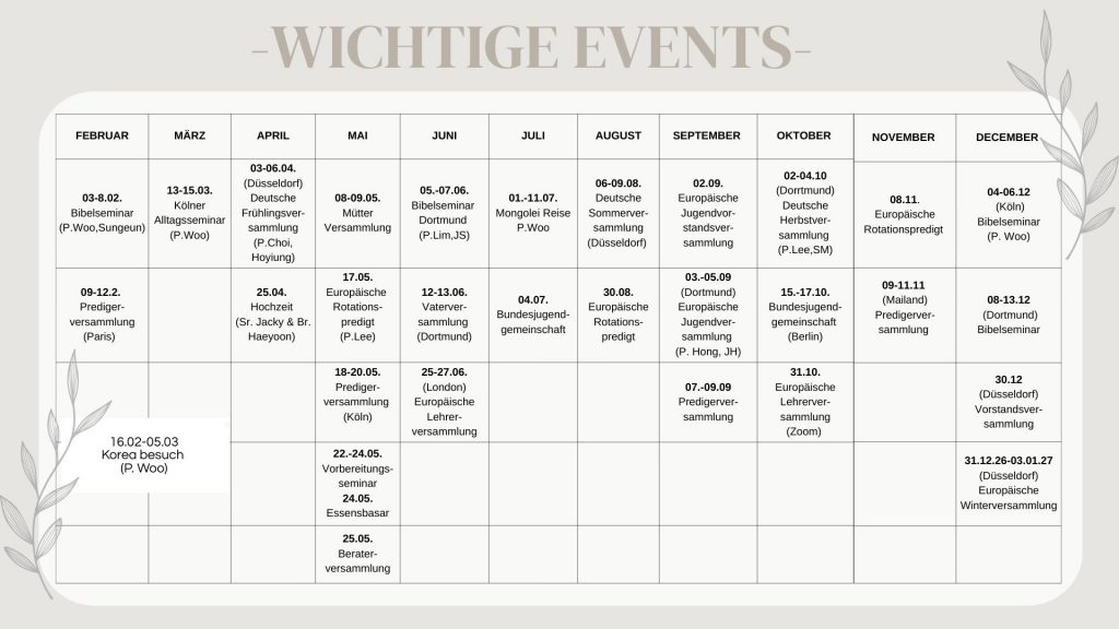| Vollversammlung | Letzter Sonntag des Monats | 14:00 Uhr |